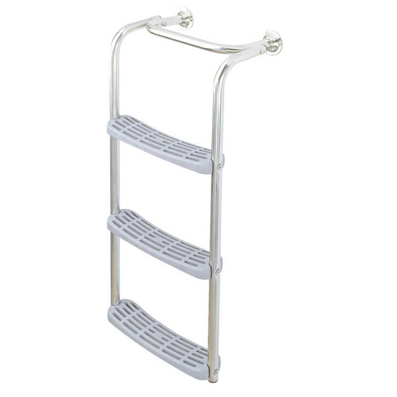 Durch das exklusive Stufendesign kann die Leiter als Badeleiter oder zum Anbordgehen vom Steg aus eingesetzt werden.