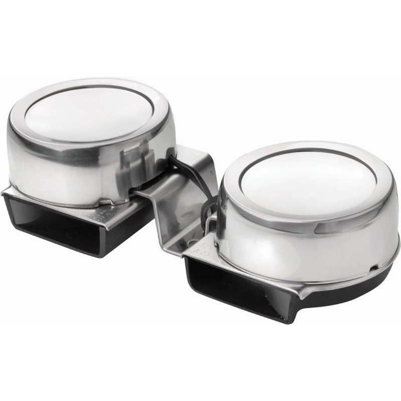 Elektrisches Schiffhorn. Gefertigt aus rostfreiem Edelstahl. In 12 Volt lieferbar.