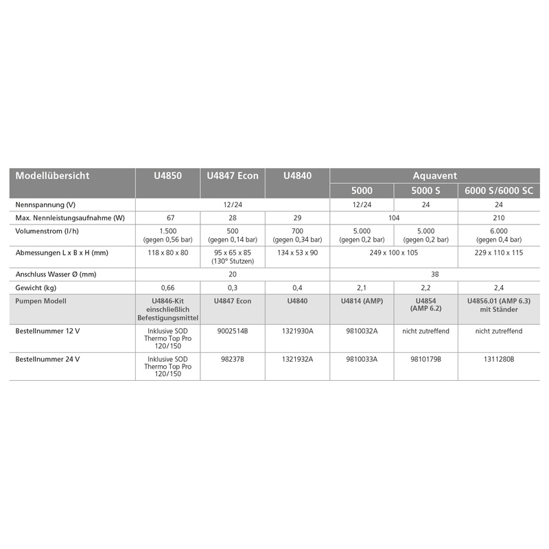 Hinweis: Diese Umwälzpumpen sind für einen Warmwasserkreislauf ausgelegt. Sie sind nicht für den Betrieb mit Seewasser geeignet.