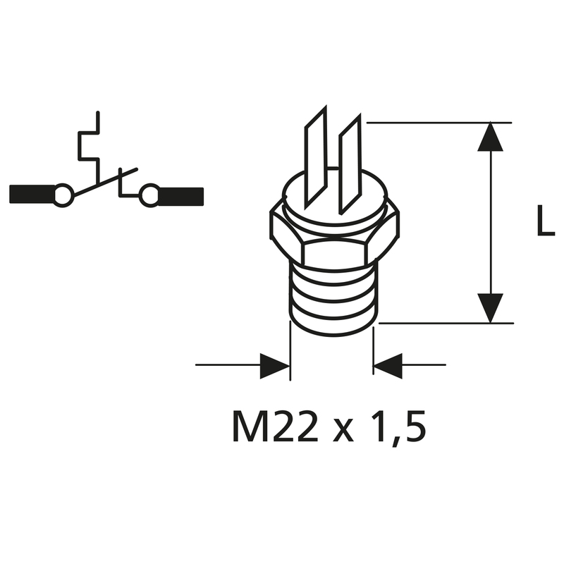 Kontrollthermostat 50 – 55 °C, öffnet, L = 38